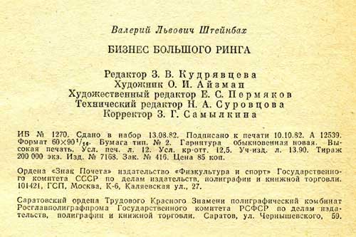 Книги Валерии Штейнбаха переведены на английский, болгарский, польский, чешский, португальский языки. За первое издание книги «Бизнес большого ринга», вышедшее в 1972 году в издательстве «Советская Россия», Валерий Штейнбах удостоен звания лауреата Всесоюзного конкурса на лучшую спортивную книгу.