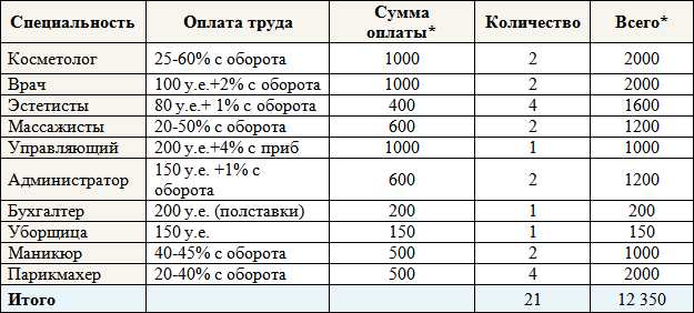 Сделаем экономический расчет небольшого салона красоты площадью в 120 кв.м., в котором присутствуют: