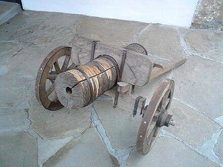 Уже через неделю у нас были первые в этом мире пушки, ага, но только деревянные. Именно деревянные, вот такие:
