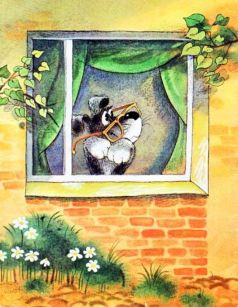 «Дедушке нашему хорошо! — подумал Барбоска. — Ушёл на работу и работает. Ваське тоже неплохо — убежал из дому и гуляет по крышам. А мне вот приходится сидеть, сторожить квартиру».