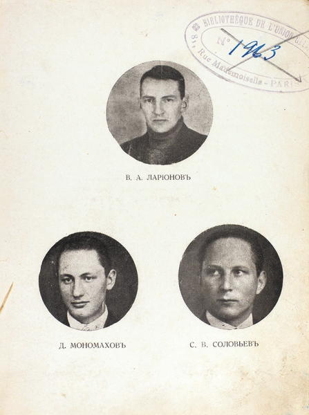 Русская молодежь, повинуясь зову долга, умела беззаветно умирать на полях сражений и с улыбкой становиться к стенке под дула чекистских ружей. Кому, как не этой молодежи, должен быть понятен и близок тернистый путь Канегиссера, Коверды и Конради, путь Марии Захарченко, Радковича и Петерса, смерть Соловьева и Шарина в лесах Онеги, скорбный путь Болмасова и Сельского.