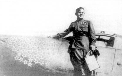 С большой долей вероятности можно утверждать, что на снимке запечатлен старший лейтенант Павел Головачев из 9-го ГИАП. Молния красного цвета очень часто изображалась на бортах советских истребителей, а вот симпатичная девушка на борту самолета — явление для ВВС РККА уникальное. Снимок сделан скорее всего в конце 1943 г., после получения Головачевым первой Золотой Звезды. Войну ас завершил в звании капитана, имея на своем счету 31 индивидуальную и одну групповую победу. Дважды Героем Советского Союза Павел Головачев стал 29 июня 1945 г.
