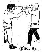 Принцип освобождения такой же, как и в предыдущем варианте. Захват разрывается движением руками вверх (рис. 8-9).