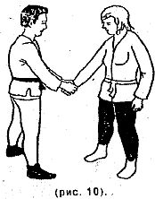 Противник захватил запястье двумя руками сверху (рис. 10).