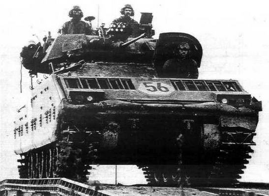 Сравнительно высокая —21,3 л.с./т — удельная мощность, небольшое удельное давление — 0,52 кг/см' и большой ход опорных катков обеспечивают БМП высокую проходимость и хорошие динамические качества. Скорость движения по шоссе и местности, а также запас хода — 480 км — делают возможным ее тесное взаимодействие с танками М1 "Абраме". Машина способна преодолевать водные преграды вплавь со скоростью до 7,2 км/ч за счет перематывания гусениц (от водометных движителей в процессе разработки отказались). Однако водоизмещения корпуса достаточно только для движения по ровной воде. При волнении необходимо повышение запаса плавучести БМП, для чего используется разворачиваемый на корпусе брезентовый кожух. Волноотбойный щит в этом случае обеспечивает жесткость конструкции. Свернутый кожух укладывается по периметру корпуса.