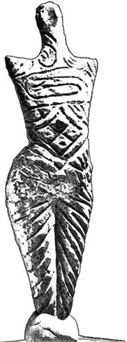 Рис. 7. Богиня, украшенная изображением лабиринта (терракота, Румыния, 5500 лет до н. э.)