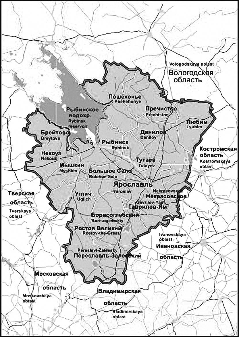 Рис. 3. Карта Ярославской области. Отмечен город Ростов Великий.