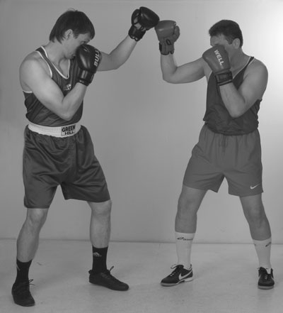 Более решительные действия несут с собой некую жертвенность. Стойка здесь полубоковая или фронтальная – для большей гибкости спины. Здесь также можно наказывать соперника за промахи, но количество ударов первым, гораздо выше. И если высоким ребятам удобнее теснить противника, соблюдая дистанцию, то здесь входить в ударную зону можно за счет уклонов, нырков, работая на всех трех дистанциях. Это подразумевает соответствующее умение. Количество ударов не ограничено манерой. Из-за насыщенности боя, взламывая защиту противника, не всегда получается сделать это идеально чисто. И поэтому бывает нельзя избежать каких-то его ударов. Главное, чтобы они или были легкими, или попадали вскользь. Тогда жертва будет оправдана отвоеванной удобной позицией для атаки. Пропущенный сильный и точный удар не даст четко развить атаку. В идеале, идя вперед, нужно совмещать работу первым номером и работу после защит. Это одно из двух атакующих направлений. И оно более совершенно. Ведь, видя и понимая работу противника, его ритмы, силу и широту ударов, легче подобрать ключи к взлому его защиты. Кроме того, такая манера требует меньшей траты энергии за счет мудрого распределения сил в работе законченными отрезками. Это умение создаст возможности для спортивного долголетия.