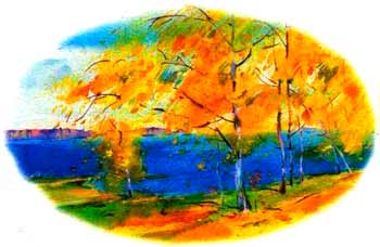 Капля по листу щёлкнет — сорвётся лист. Синицы на ветках завозятся — брызнут листья по сторонам. Ветер вдруг налетит — закружится пёстрый смерч. А уж если тяжёлый косач с лёту в ветки вломится — хлынет сверкающий лиственный водопад!