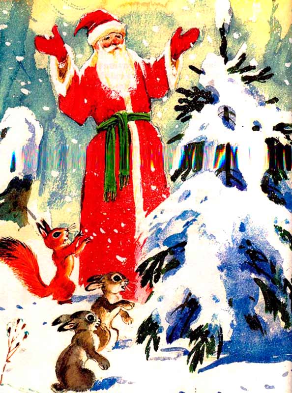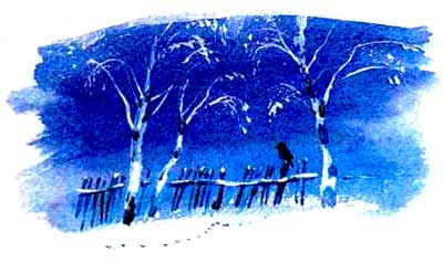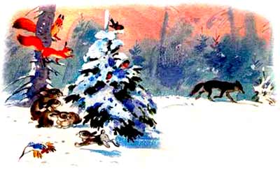 Зимняя полночь. Крепчает мороз, густым серебряным инеем опушил он ветви деревьев, будто одел их в белые варежки.
