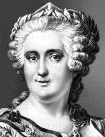 Екатери'на II Алексеевна [21.4(2.5).1729, Штеттин. — 6(17).11.1796, Царское Село, ныне г. Пушкин], российская императрица с 28 июня 1762. Урождённая Софья Фредерика Августа Анхальт-Цербстская. Происходила из бедного немецкого княжеского рода. В 1745 была выдана замуж за наследника российский престола, будущего Петра III. Обладая недюжинными способностями, волей и трудолюбием, изучила русский язык, много читала, приобрела обширные познания. Вскоре после воцарения непопулярного среди родовитого дворянства Петра III, опираясь на гвардейские полки, свергла его. Внутренняя и внешняя политика 2-й половины 18 в., подготовленная мероприятиями предшествующих царствований, отмечена важными законодательными актами, выдающимися военными событиями и значительными территориальными присоединениями. Это связано с деятельностью крупных государственных и военных деятелей: А. Р. Воронцова, П. А. Румянцева, А. Г. Орлова, Г. А. Потемкина, А. А. Безбородко, А. В. Суворова, Ф. Ф. Ушакова и др. Сама Е. II активно участвовала в государственной жизни. Жажда власти и славы являлась существенным мотивом её деятельности. Политика Е. II по своей классовой направленности была дворянской. В 60-е гг. Е. II прикрывала дворянскую сущность своей политики либеральной фразой (что характерно для т. н. «просвещённого абсолютизма»). Эту же цель преследовали оживлённые сношения её с Вольтером и французскими энциклопедистами и щедрые денежные подношения им. В 1767 Е. II созвала Комиссию об Уложении и составила для неё «Наказ», широко заимствуя идеи передовых западных мыслителей. Однако работа комиссии была прервана в 1768 под предлогом войны с Турцией. В интересах дворянства было учреждено Вольное экономическое общество (1765); начато генеральное межевание (1766) для упорядочения помещичьего землевладения, ряд указов укреплял помещичью власть над крестьянами. В годы правления Е. II процветал фаворитизм. Фавориты щедро награждались землями, крестьянами, деньгами. Всего Е. II раздала 800 тыс. десятин заселённых земель. Усиление крепостнического гнёта и продолжительные войны легли тяжёлым бременем на народные массы, и нараставшее крестьянское движение переросло в Крестьянскую войну под предводительством Е. И. Пугачёва 1773—75. Подавление восстания определило переход Е. П к политике открытой реакции. Главные акты Е. II: Учреждение для управления губерний (1775), укрепившее бюрократический аппарат власти на местах (см. Губерния), и Жалованная грамота дворянству 1785, оформившая сословные привилегии дворянства. Нарастание революционного движения в Европе и рост передовой общественной мысли в России обусловили обострение реакционного курса, направляемого лично Е. II (сыскная канцелярия С. И. Шешковского), и особенно усиление идеологической борьбы (дело Н. И. Новикова, дело А. Н. Радищева, журнальные репрессии).