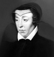 Екатери'на Ме'дичи (Catherine de M'edicis) (13.4.1519, Флоренция, — 5.1.1589, Блуа), французская королева, жена (с 1533) Генриха II, французского короля в 1547—59. Из рода флорентийских герцогов Медичи. В царствование своих сыновей Франциска II (в 1559—60), Карла IX (в 1560—74), Генриха III (в 1574—1589) в значительной мере определяла государственную политику. В период религиозных войн стремилась не допустить вельмож к управлению государственными делами. Придерживаясь политики лавирования, в 1570 настояла на заключении Сен-Жерменского мирного договора с гугенотами. Но в 1572, опасаясь усиления гугенотов и особенно влияния их вождя Колиньи на Карла IX, была одним из главных организаторов Варфоломеевской ночи.