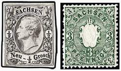1. [Sachsen] — б. королевство, с 01.01.1872 в составе Германии. Первая марка — «Саксонская тройка» — вып. 01.07.1850.