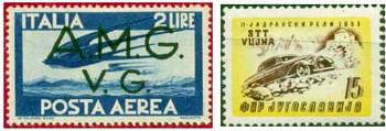 ТРИЕСТА ВЫПУСКИ [Trieste] (Италия). В 1945 после освобождения Триеста от фашистских войск на марках Италии была сделана надпечатка назв. города, даты «1.05.1945» и новых номиналов. В 1947 город и прилегающий район объявлен Свободной тер. Триест, разделенной на зоны А и Б. Первая занята англо-амер. войсками, вторая — войсками Югославии. В зоне А собственные марки — марки Италии с надпечаткой аббревиатуры Союзного военного управления — стали изд. с 01.10.47. Вып. продолжался до окт. 1954, надпечатывались почти все марки Италии этого периода. В окт. 1954 зона А была присоединена к Италии, и в нояб. марки Триеста заменены марками Италии. Зона
