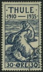 ТУЛЕ ВЫПУСК [Thule, зап. побережье Гренландии]. В 1935 вып. частная серия марок в честь 25-летия основания поселка Туле; использ. для оплаты кор., перевозимой на частном корабле из Туле в др. части Гренландии.