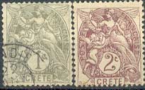 марки с надписью (франц.) «Крит». В 1903 на них сделана надпечатка нового номинала в пиастрах. Почт. отделения были закрыты 30.10.1914.Почтовые марки Французской почты на о. Крит