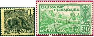 ФРАНЦУЗСКАЯ ГВИАНА [Guyane Francaise] — б. франц. колония на сев.-вост. побережье Южн. Америки. С 1946 — заморский департамент Франции. Первые собственные марки вып. в 1886, до 1892 использ. марки универсальных вып. с надпечаткой назв. колонии и нового номинала (1886—88). С 1892 изд. марки колониального типа с назв. колонии. Первые памятные марки в 1931, авиапочт. — 1933, первый блок — 1937. Вып. марок продолжался до 1947, когда марки колониальных вып. были изъяты из обращения и заменены марками Франции.