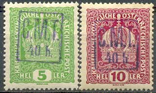 ЮЖНАЯ ГАЛИЦИЯ И БУКОВИНА. В нояб. 1918 Румыния оккупировала тер. Буковины и Южн. Галиции (г. Коломыя). В июне 1919 в обращение поступили марки Австрии с