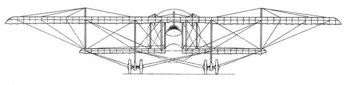 «Фарман MF.40», вид спереди. Видны три прожектора под нижним крылом и генератор на левом крыле.
