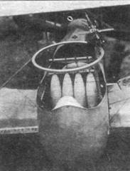 Станок пулемета «Гочкисс» и 25-кг бомбы, уложенные в кабине стрелка на «Фармане MF.40».