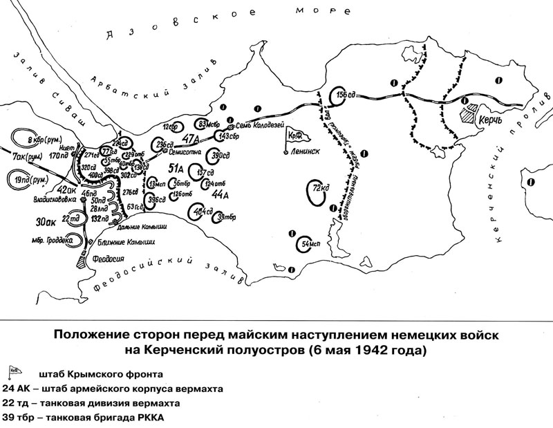 К этому времени Крымский фронт располагал общим численным превосходством над противником в силах и средствах; в дивизиях — в 2 раза, в людях — в 1,5, в артиллерии — в 1,4, в самолетах и танках силы были примерно равны.