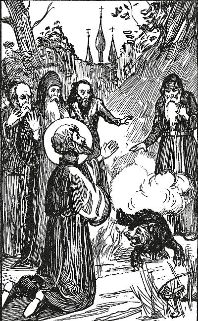 По молитве св. Паисия, из уст старца вышел нечистый дух и превратился в дикого зверя