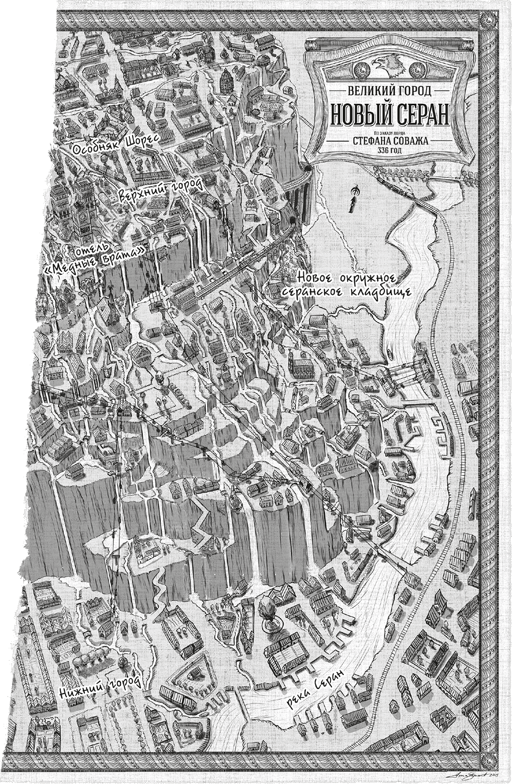 Как обычно, много людей приложило усилия к тому, чтобы книга появилась на свет. В ней прекрасные иллюстрации, сделанные Беном Максуини и Айзеком Стюартом: карты и символы нарисовал Айзек, а все газетные вставки – Бен. Оба здорово помогли и с текстом газеты, причем Айзек сам написал кусок про Ники Сэвидж. Поскольку идея заключалась в том, что Джек теперь нанимает помощников, мы хотели, чтобы историю изложили другим стилем. На мой взгляд, получилось отлично!