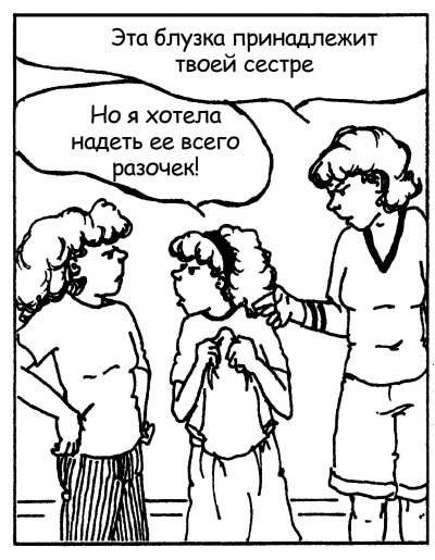 – Да, и, защищая права старшей, мать дает ей возможность все же одолжить блузку младшей.