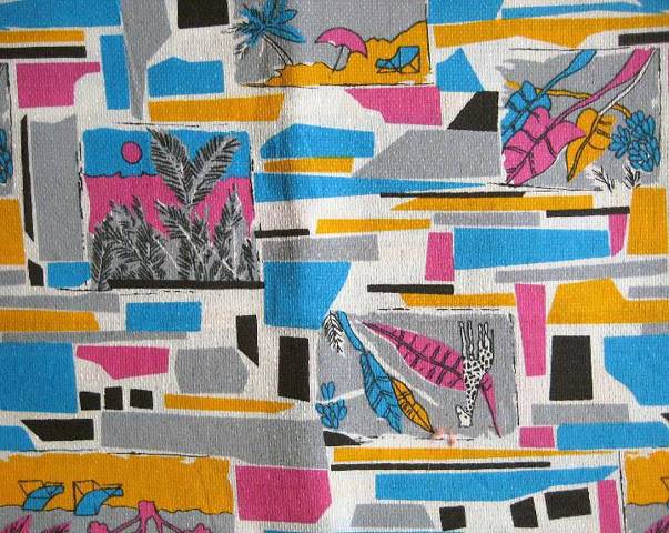 А что? Забавно. Ткань на ощупь, как льняное полотенце. Из такого банный халатик хорошо делать. Но ткани мало, на халат не хватит. Только рисунок странный. Как ни крути, то жираф вверх ногами, то пальма не туда растёт. Сразу вспомнился персонаж из «Чародеев», который всё возмущался: «Ну, кто так строит?»