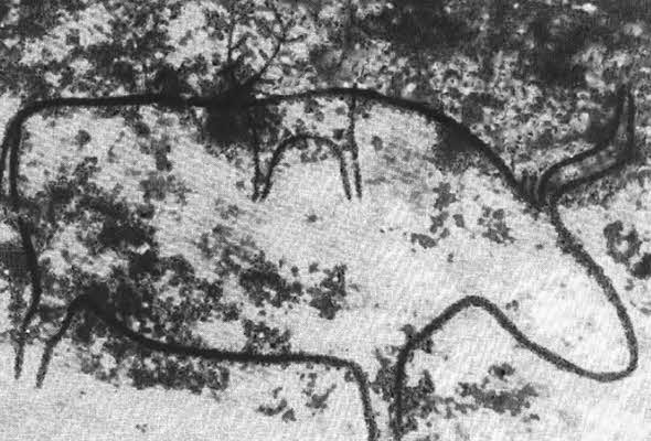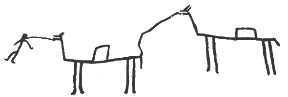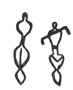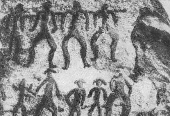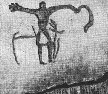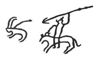Беюкдаш. Примитивные изображения людей. Справа — охотник, вооруженный луком. Эпоха неолита.