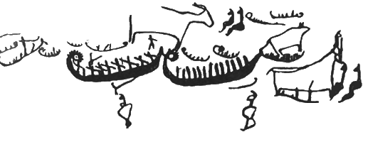 Беюкдаш. Лодки с вооруженными и невооруженными гребцами. Конец эпохи неолита. Изображения людей и животных относятся к более древнему периоду.