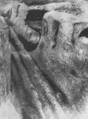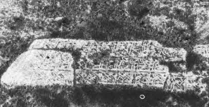 Мангун. Плита, украшенная резьбой, среди древних развалин