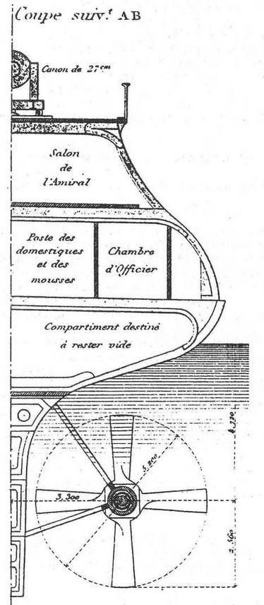 Броненосец "Курбэ". 1886 г. (Поперечное сечение корпуса в районе кормы)