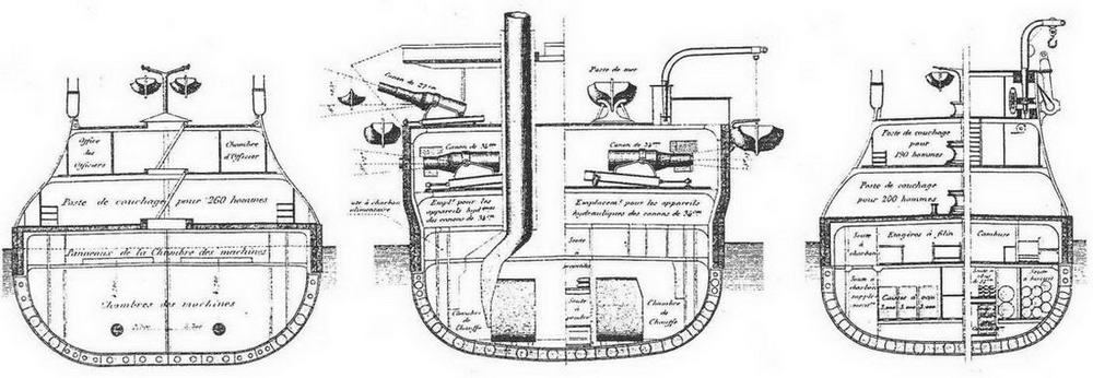 Броненосец "Курбэ". 1886 г. (Поперечные сечение корпуса)