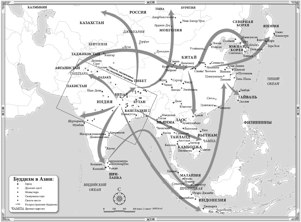 Будда давал учения мужчинам и женщинам из всех социальных слоев, рас и возрастных групп. Многие из них оставляли жизнь домохозяев и становились монахами; так образовалась община сангхи. Последователи Будды достигали реализации и становились искусными учителями, а затем делились своими познаниями с другими, таким образом распространяя учения по всей древней Индии. В последующие века Дхарма Будды распространилась на юге – на Шри-Ланке; на западе – на территории нынешнего Афганистана; на северо-востоке – в Китае, Корее и Японии; на юго-востоке – в Азии и Индонезии; и на севере – в Центральной Азии, Тибете и Монголии. В последние годы множество центров по изучению Дхармы появилось в странах Европы, Северной и Южной Америки, в бывших советских республиках, в Австралии и в Африке.