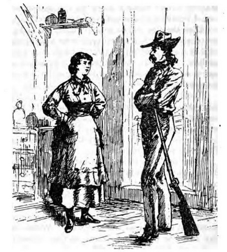 – Это значит, мадам, что части Конфедерации совершили вылазку на Канзасскую границу. Поскольку Буффало Билл выступает на стороне Союза, мы считаем должным взять его мать и сестру в залог его будущего хорошего поведения. Я рад, что вы одеты и готовы к путешествию, так как мои люди останутся здесь лишь для того, чтобы собрать добычу, которая им нужна, и предать всё остальное огню. Затем мы отправимся в Миссури, и вы поедете