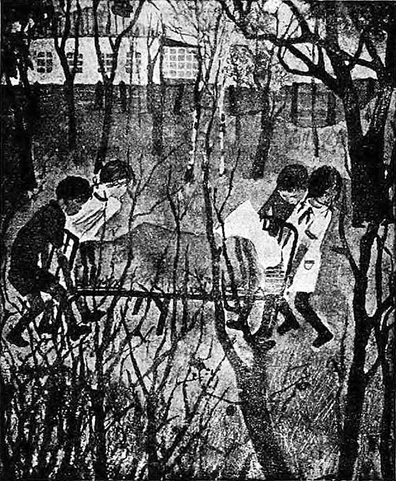 Букан сидел на своем месте и смотрел в книгу. Ребята собрались кучками, о чем-то разговаривали и смеялись. Но вот в класс вошел Андрей Иваныч. Начался урок.
