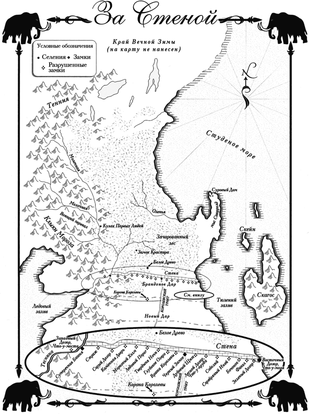 Большая черная сука, понюхав отпечатки медвежьих лап, поджала хвост и отошла к сбившейся в кучу стае. Собаки жались друг к дружке на берегу реки под натиском свирепого ветра. Этот ветер пробирал и Четта сквозь все слои черной шерсти и вареной кожи. Слишком холодно и для человека, и для зверя, но они тут, и деваться некуда. Четт скривил рот, прямо-таки чувствуя, как наливаются кровью прыщи на лице и шее. Сидел бы он сейчас за Стеной, обихаживал воронов да разводил огонь для старого мейстера Эйемона. Это ублюдок Джон Сноу лишил его этой завидной доли — Сноу и его жирный дружок Сэм Тарли. Это из-за них он морозит себе яйца вместе со сворой псов в самой чаще заколдованного леса.