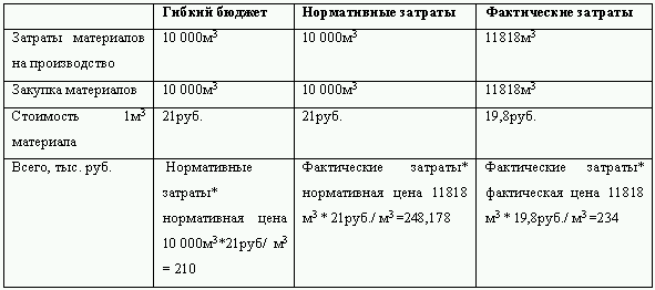 Предприятию для выпуска и последующей реализации продукции необходимо выпустить 8000 единиц товара. Для его производства требуется 10000 м3 материала, в бюджете стоимость 1 м3 составляет 21 руб, следовательно затраты на материалы по бюджету должны составить 210 тыс. руб. Предприятие затрачивает 234 тыс. руб. на приобретение 11818 м3 материала. Необходимо определить отклонения по материалам в цене и количестве.