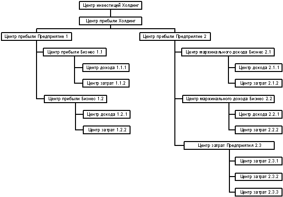 Схожим образом с приведенными структурами ЦП и ЦМД выглядят структуры Центров инвестиций: ЦИ включают в себя как ЦП, так и ЦМД. Рассмотрим два варианта – ЦИ с подчиненными ЦП и ЦИ с подчиненными ЦМД.
