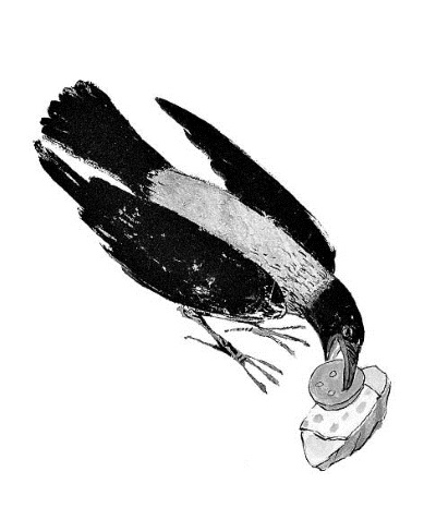 Тем временем появилась знакомая ворона, и всё повторилось. В точно таком же порядке были уложены сыр и колбаса. Правда, с первого раза вороне не удалось ухватить бутерброд – он развалился. Но хозяйственная
