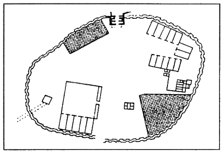 Чтобы получить полную уверенность, начали раскопки восточнее здания с опорами, где Гарстанг уже вскрыл одно захоронение, и натолкнулись на две параллельные основные стены, которые были соединены между собой вертикальными разделяющими стенами — очевидно, частью какого-то оборонительного сооружения. Четыре таких помещения были полностью раскопаны, еще два частично — по 10–12 метров, наружные стены примерно 1,5 м и промежуточные 1 м толщиной. Каждое помещение имело отдельный вход. Возник вопрос, действительно ли археологи натолкнулись на Соломоново городское укрепление.