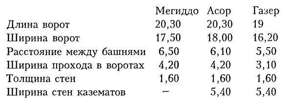 Ядин изучил отчеты Макалистера и его словно ударило током, когда он исследовал план «крепости Мак-кабеер», как ее называл Макалистер. Чертеж однозначно представлял стену укрепления, помещение для охраны и часть городских ворот — т. е. то же, что в Мегиддо и Асоре. Ядин был уверен, что речь шла не о части крепости Маккабеер, а о воротах Соломона. Они были раскопаны в 1965–1973 гг. археологической экспедицией под руководством Уильяма Г. Девера в ходе нескольких кампаний. Найденные изделия из красной обожженной глины указывают на эпоху Соломона. А сравнение параметров (м) не оставляет никаких сомнений в том, что ворота Газера построены по тому же плану, что в Мегиддо и Асоре: