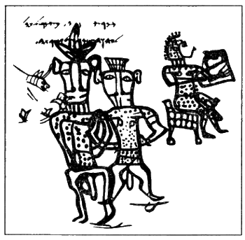Совершенно загадочен еще один рисунок на глиняном кувшине: играющая на лире женщина, рядом с которой две фигуры с фаллосами. Может быть, речь идет об Ашере, а стоящий слева — это Господь,