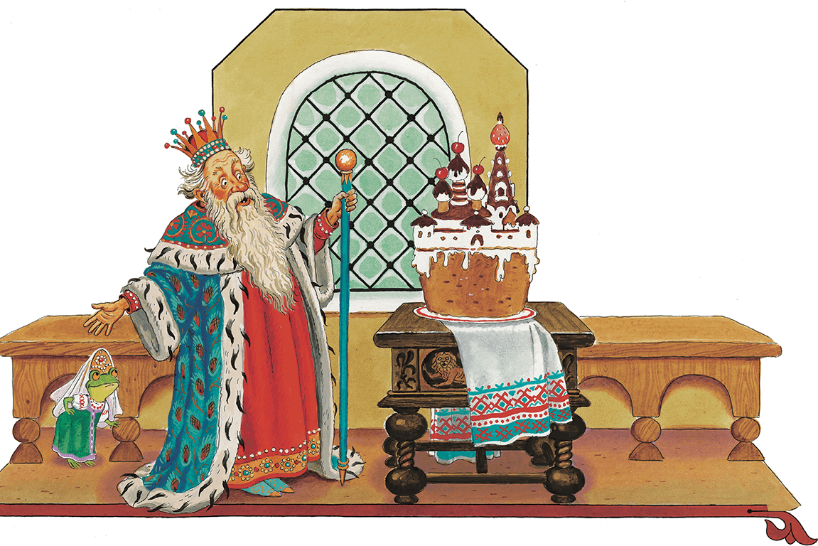 – Не тужи, царевич! Ступай один к царю в гости, а я вслед за тобой буду; как услышишь стук да гром, скажи: это моя лягушонка в коробчонке едет.