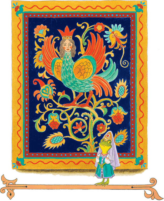 Наутро проснулся Иван-царевич, у квакуши ковёр давно готов, и такой чудный, что ни вздумать, ни взгадать, разве в сказке сказать. Изукрашен