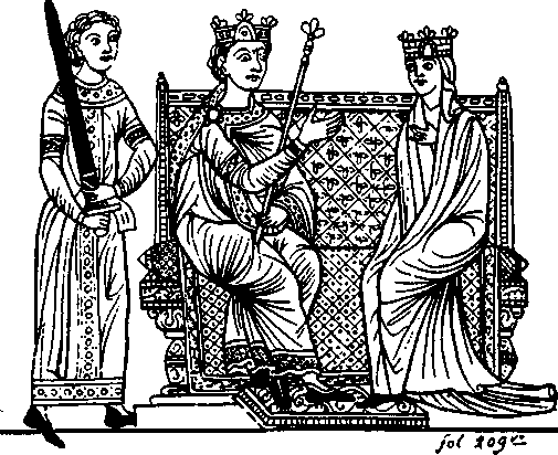 Сюда тришла царица Востока, Она убедилась в божественной Мудрости Соломона. Черна она, но красива, Миррой и ладаном вычернена Черная дева.Соломон и царица Савская (из «Hortus deliciarum»)