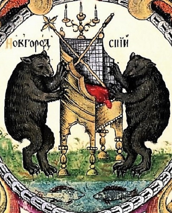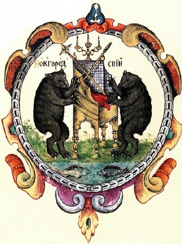 В общем, не приходится удивляться тому, что в герб новгородский цари все добавляли и добавляли самодержавных символов, пока не набралась полная панамка.