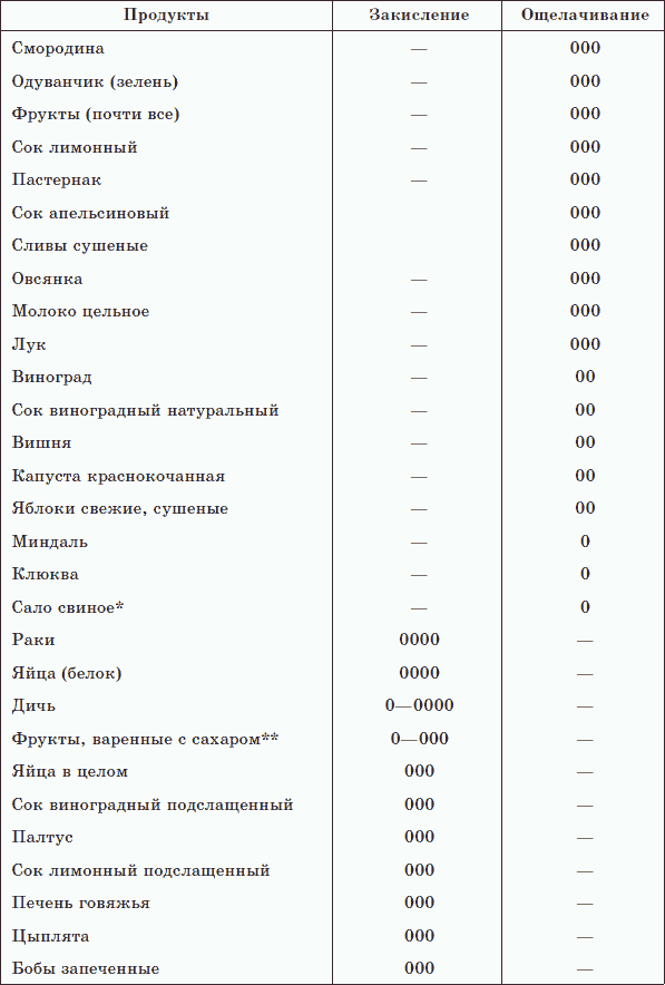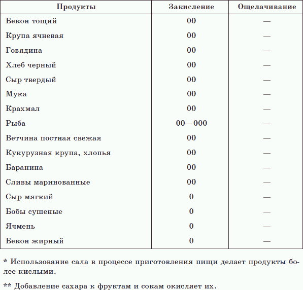 Для удовлетворения практического спроса читателей я составил на основании работ Уокера и Поупа таблицу с указанием кислотности и щелочности продуктов (табл. 2).