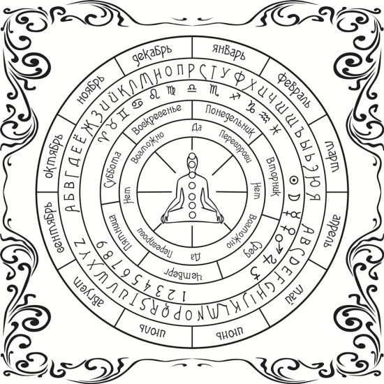Работа с таблицейПрежде чем приступить к работе с таблицей, необходимо составить примерный план. Что вы хотите? Что вы намерены узнать? Вы можете выписать это на бумагу. После того как вы подготовились к работе – успокоились, настроились на нужный лад, расположите маятник в центре таблицы. Если он остается в центре, вы готовы к работе. Любое отклонение говорит о вашем волнении и неспособности в данный момент времени получить ответы. Успокойтесь и вернитесь к работе вновь, расположив маятник в центре.